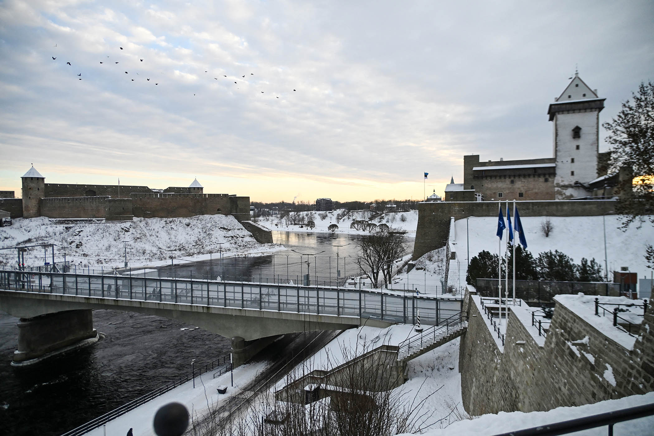 The ‘Friendship Bridge’ over the Narva River that runs between Estonia and Russia has been reinforced with barbed wire