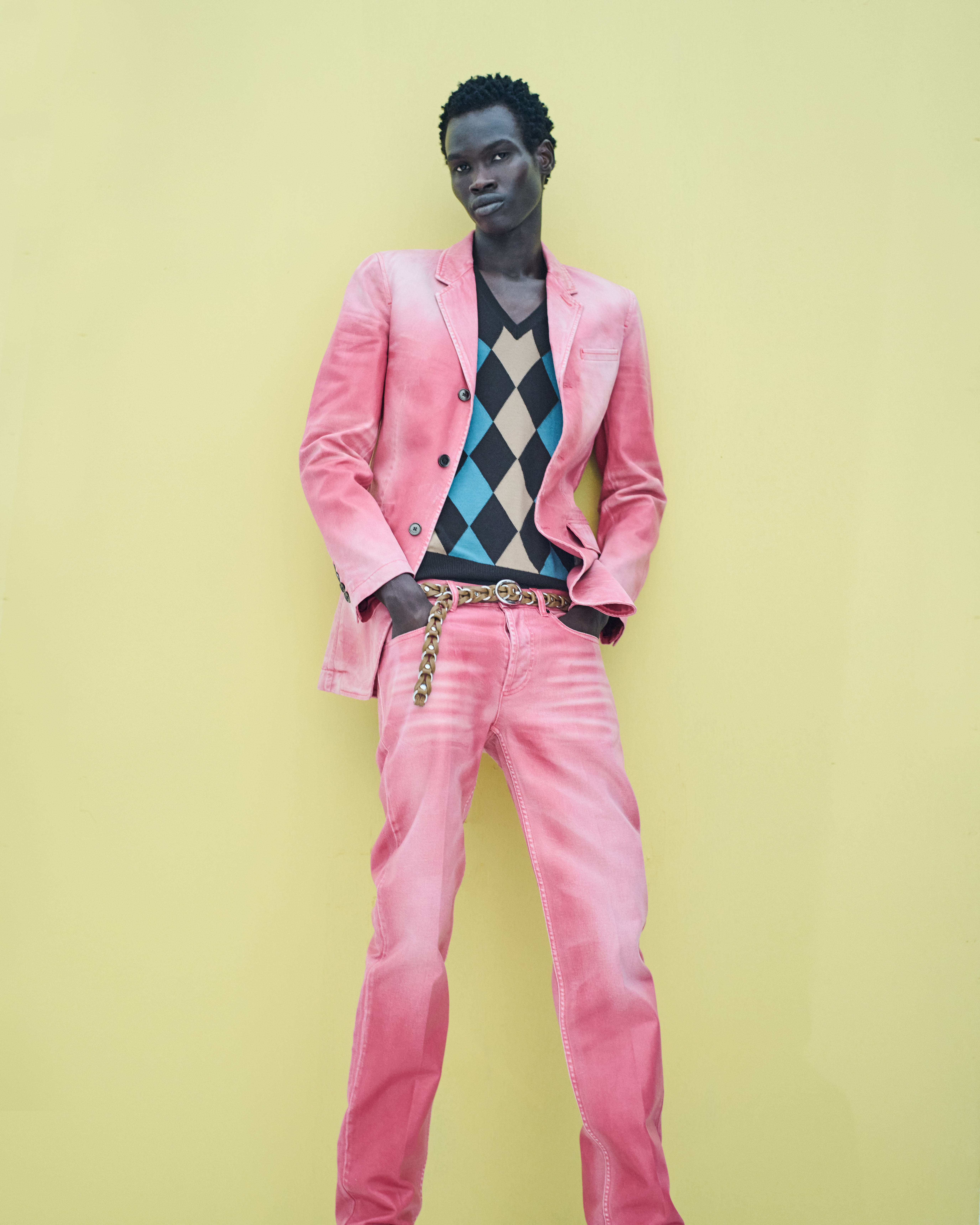 Jacket, shirt, vest, trousers and shoes all Louis Vuitton