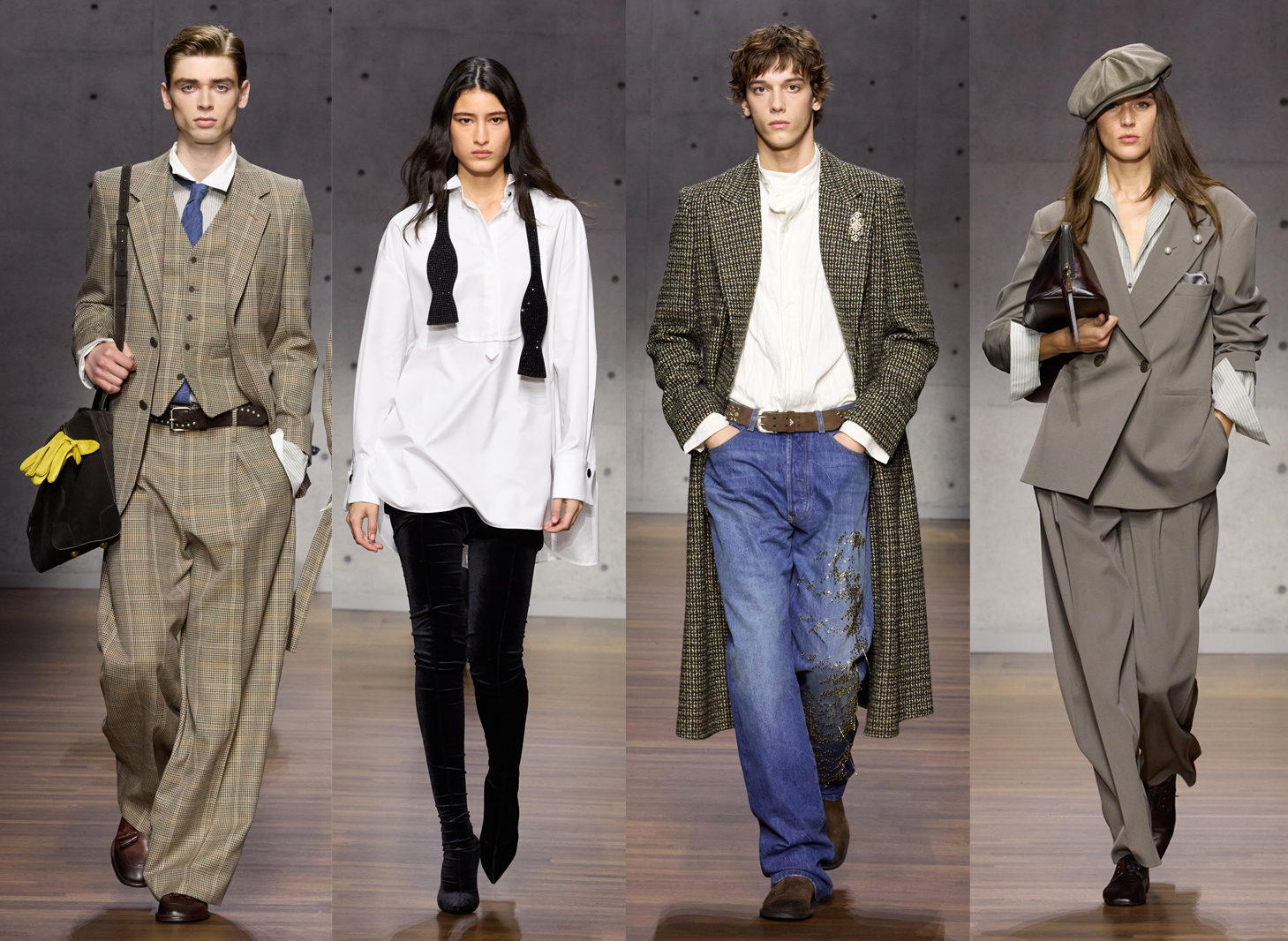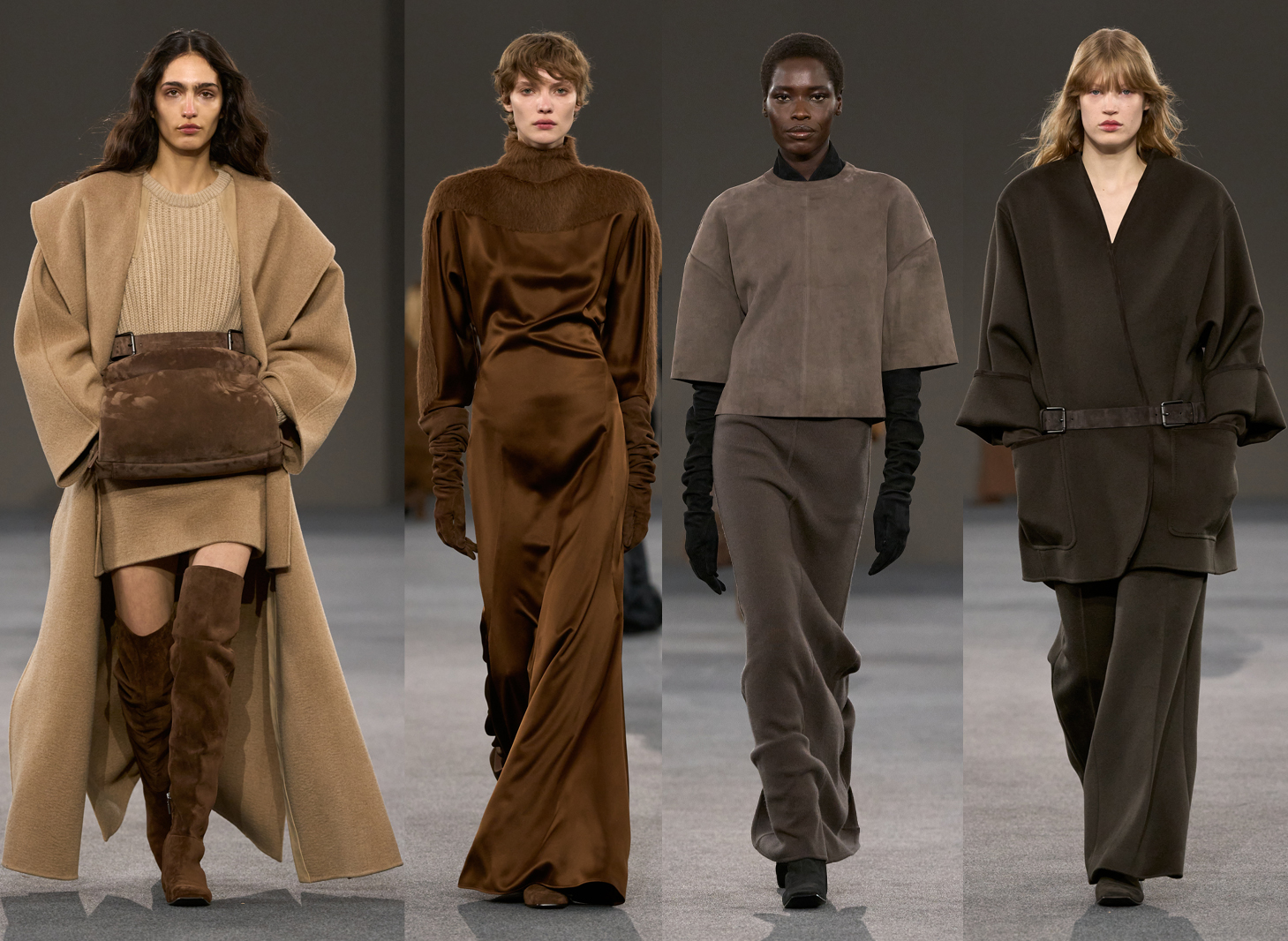 Creative director Ian Griffiths said the inspiration for AW26 came from a trip he took with a friend to Sutton Hoo, the Anglo Saxon burial site near his home in Suffolk. “I was struck by the beauty of artefacts made in the so-called Dark Ages,” he said backstage. “I was thinking about objects and artefacts that get more beautiful with time,” Griffiths explained, “which led me to Max Mara coats – life companions that also bear the signs of wear and hopefully, grow old with grace”. This led him to his other muse, Matilda of Canossa, an important female governing figure of the Italian Middle Ages. Griffiths translated this into a wardrobe built to last with historical references like capes and gauntlet gloves. The first exit featured a butter-soft suede top paired with a knitted maxi skirt. This was followed by variations on the coat, ranging from textural, floor-length double cashmere, alpaca, and mohair, to blanket-style and hooded cape silhouettes that wrapped the body. Jackets were softly tailored, wrapped and fastened at the side, or in collarless suede. The finale featured minimal bias-cut silk skirts and dresses: one fused with fine cashmere knit, the next a full cosy knitted gown.