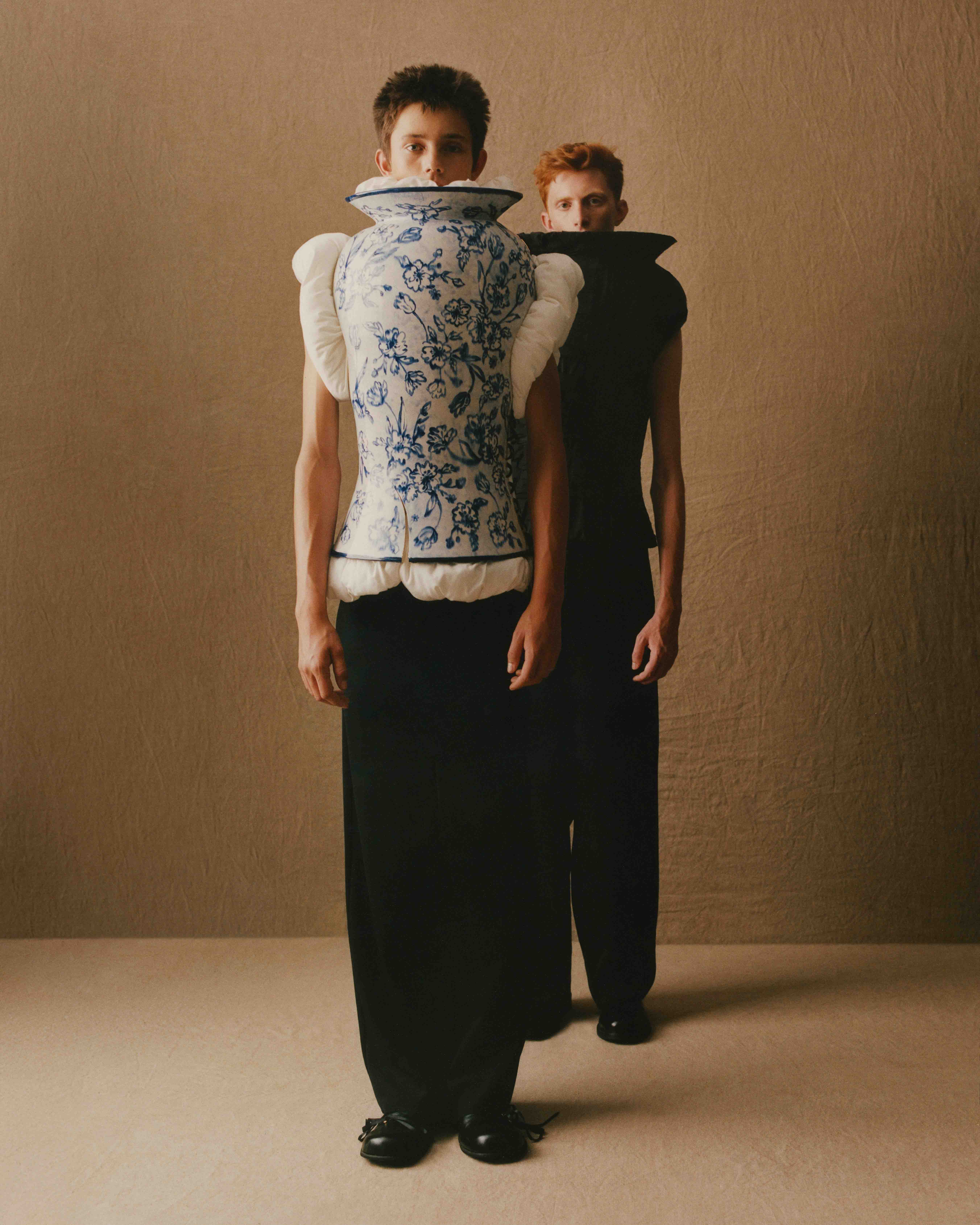 Daniel del Valle, the creative force behind TheVxlley has been making waves with his wearable art. He burst on to the scene with debut show ‘The Narcissist’ in November 2025, a three-year labour of love rooted in personal memory and heavily inspired by his upbringing in Pilas, a small village in Seville. Del Valle was raised by a creative family, learning embroidery and plant care from his grandmother, ceramics with his mother and baking from his father. Highlights in his last collection include a ceramic T-shirt constructed from thousands of Victorian pipes found along the River Thames, a bodice made of living flower that requires watering, and a garment made from bread, which was developed in collaboration with his father. TheVxlley