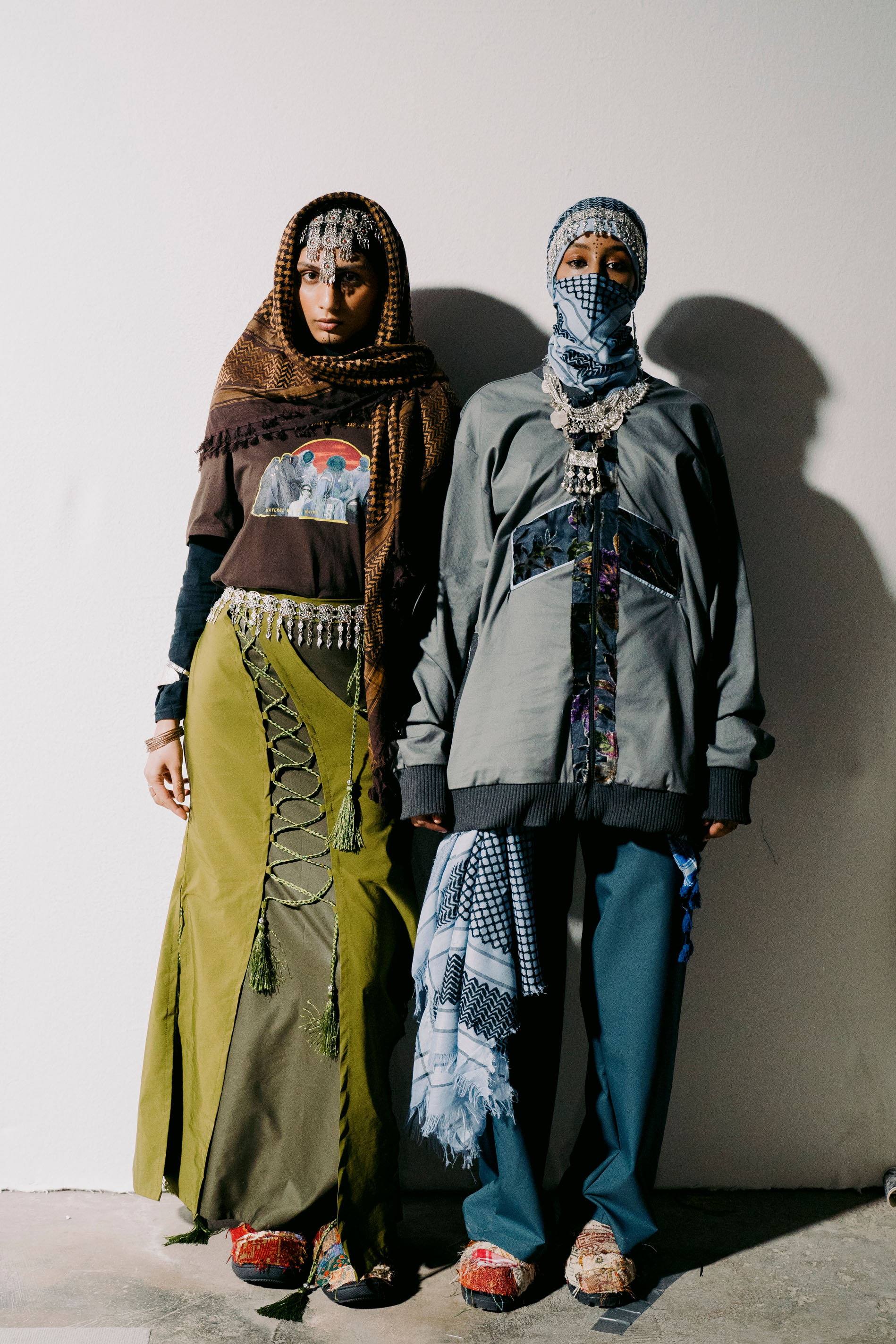 Since graduating from Central Saint Martins, where she became the first designer to present a Hijab collection at the 2022 MA Fashion show, Kazna Asker has been on a mission to fuse fashion with community spirit and activism. The designer whose clothes represent her Yemeni heritage was awarded the Debut Talent Prize at Fashion Trust Arabia in 2022. The British Fashion Council New Gen recipient grew up in Sheffield, a city that’s home to one of the biggest Yemeni communities in the UK. Kazna has fought for the rights of POC teachers at the Sheffield town hall and has co-organised community fundraisers for both Yemen and Palestine. Her hand-sewn tracksuits, tailoring and outerwear merges traditional Middle Eastern fabrics with British street and youth club culture. Kazna Asker