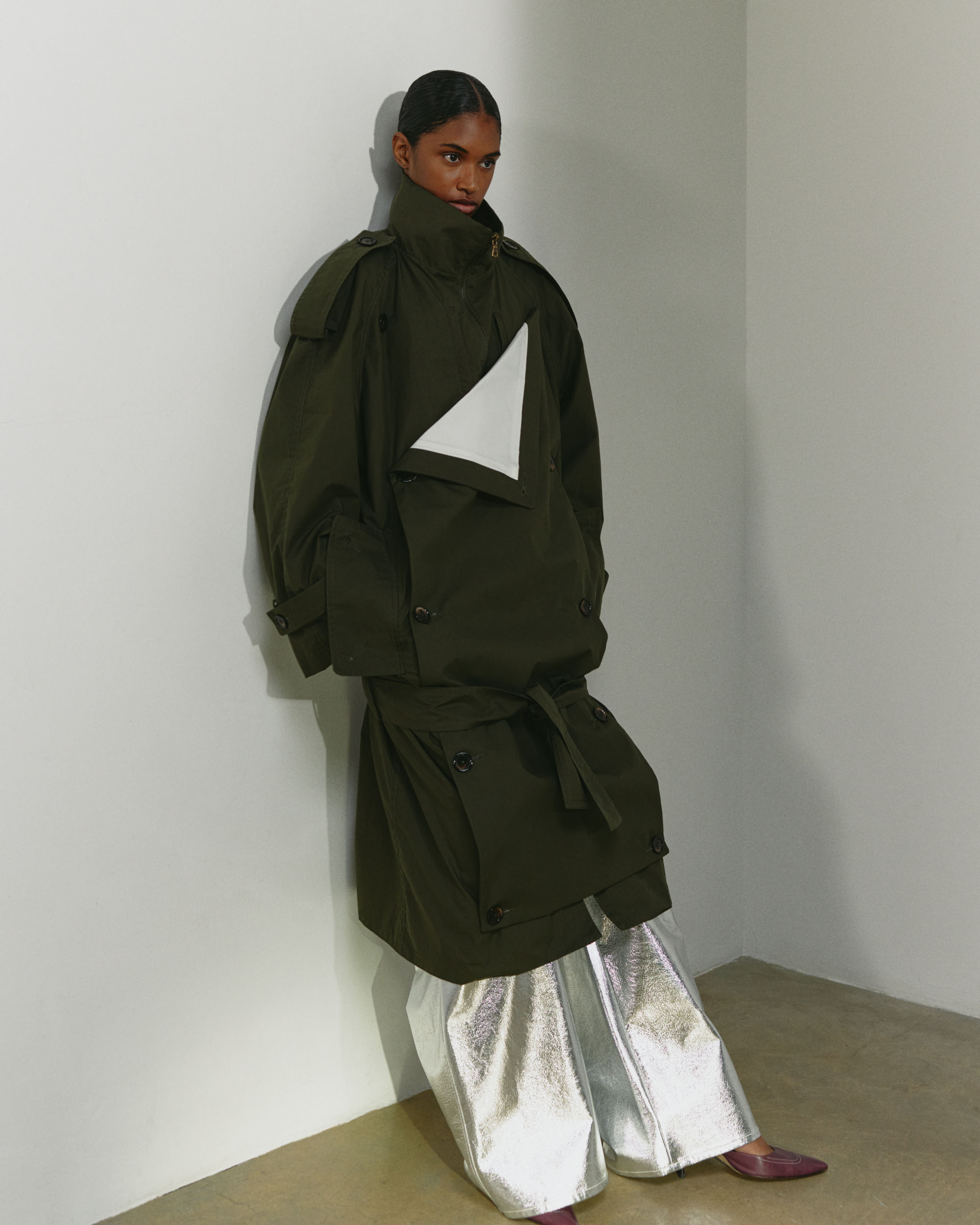 After graduating from Central Saint Martins in 2024, Traiceline Pratt has already dressed A$AP ROCKY and worked in a design role at Phoebe Philo. In November of 2025, he launched Goyagoma, a womenswear label heavily influenced by the memories, objects and people that shaped his upbringing in Nassau, Bahamas. The collection includes funnel-neck coats that fasten in an origami-like manner, luxe shearling jackets and an oversized plaid shirt with masculine cut, which Pratt pairs with a pair of high-shine yellow leather trousers. The trousers muted colour was inspired by a stick of butter the designer recalls being in his childhood refrigerator. Pratt will present part two of Goyagoma AW26 alongside Jacek Gleba and Louis Mayhew in the Fashion East lineup at London fashion week. Traiceline PrattÂ