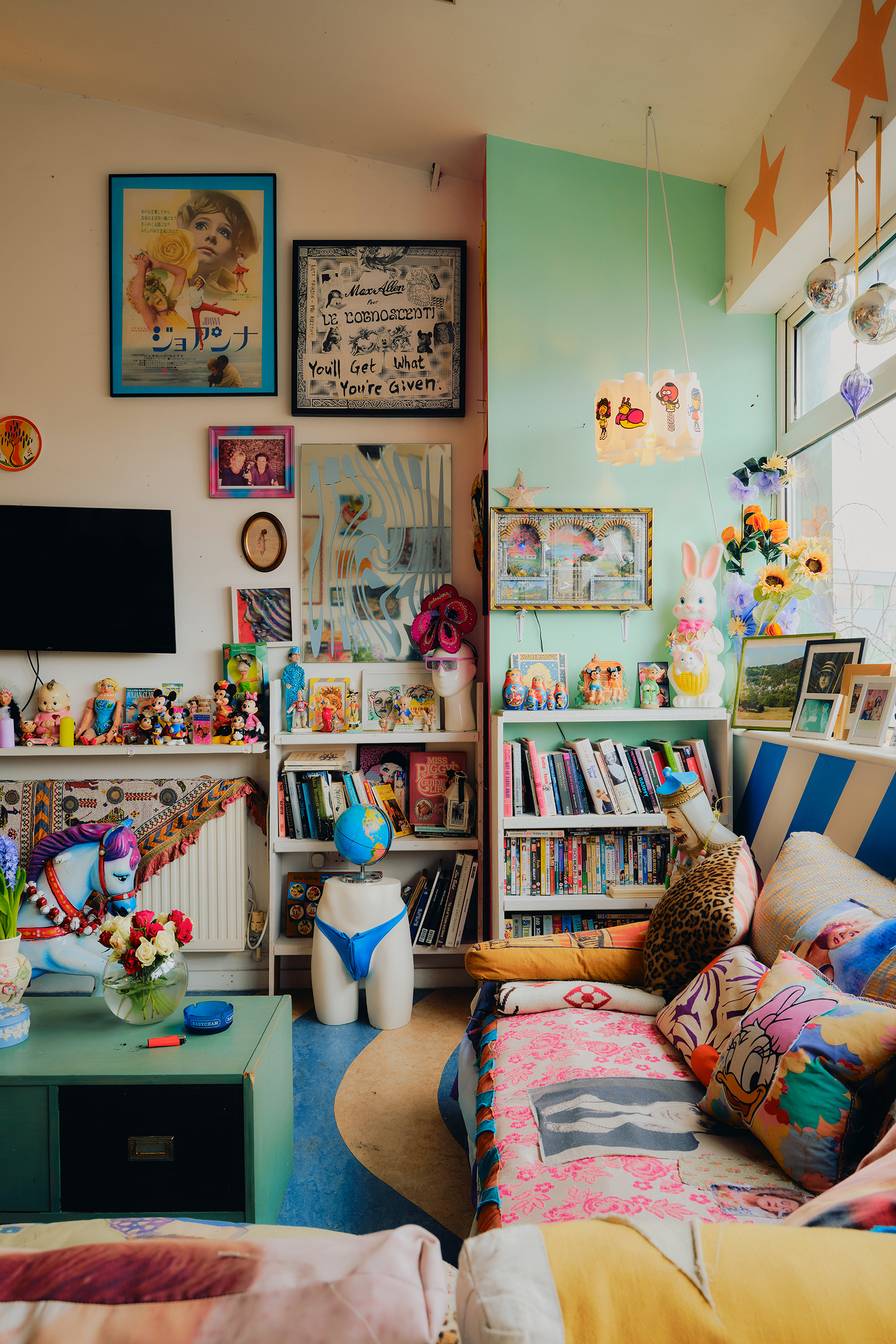 Walking through the flat, I’m reminded of Sir John Soane’s Museum in Holborn, another domestic space where collecting, working and living collapsed into one another. Soane arranged his home as a demonstration for potential clients and students: a walk-through architectural portfolio where every object testified not just to knowledge and range but to idiosyncratic taste. Allen’s operates similarly, but with glitter instead of marble busts. It is a scrapbook scaled to hold a life, a place that shows you what its inhabitants can do. “It’s not tat for the sake of tat,” Allen says. “It’s research.”